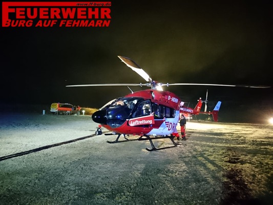 Wir wurden zu einer Flugsicherung für den im Anflug befindlichen Rettungshubschrauber Christoph 42 aus Rendsburg-Schachtholm alarmiert. Wir leuchteten den Sportplatz der Inselschule aus und konnten schon kurze Zeit später den Einsatz wieder abbrechen, da der Rettungshubschrauber auf Fehmarn nicht mehr benötigt wurde und stattdessen zum Folgeeinsatz an die Schlei flog.