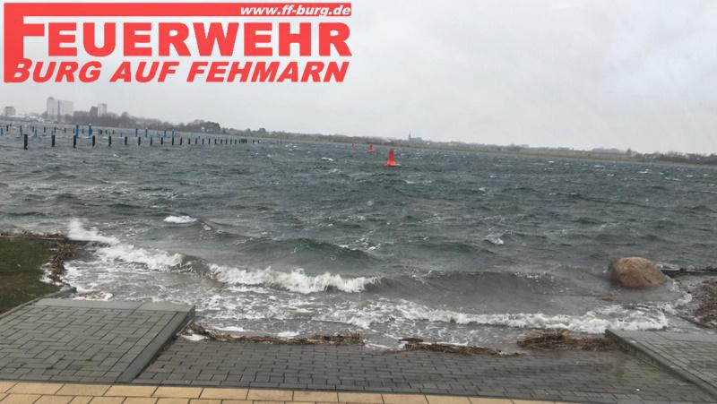 Unser stellv. Ortswehrführer ist zusammen mit einem Zugführer, dem städtischen Bauhof und der Polizei auf einer sogenannten Ortskontrollfahrt (OKF) durch die Ortschaften Burgstaaken (Fischereihafen & Klärwerk) und Yachthafen Burgtiefe gewesen (in regelmäßigem Austausch mit dem Ordnungsamt), um die Wasserstände zu kontrollieren. Gegen 10:12 lief der Parkplatz in Burgstaaken langsam über die Gullys voll. An allen anderen Stellen gab es keine besonderen Vorkommnisse, das Hochwasser (bzw. die angekündigte Ostsee-Sturmflut) hat die Insel nicht allzu doll getroffen. Gegen 12:00 Uhr gingen die Wasserstände bereits zurück, sodass der Einsatz beendet wurde.