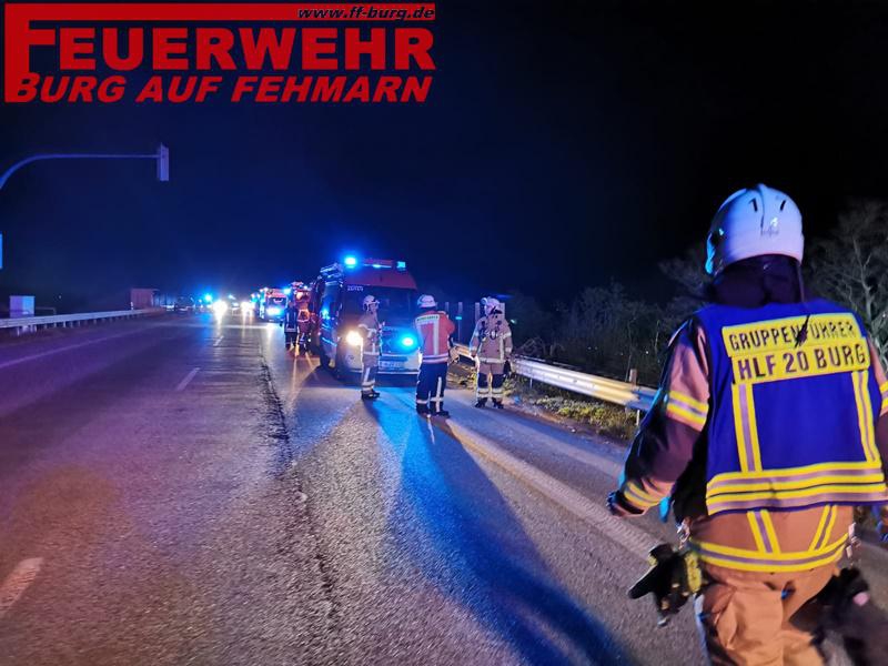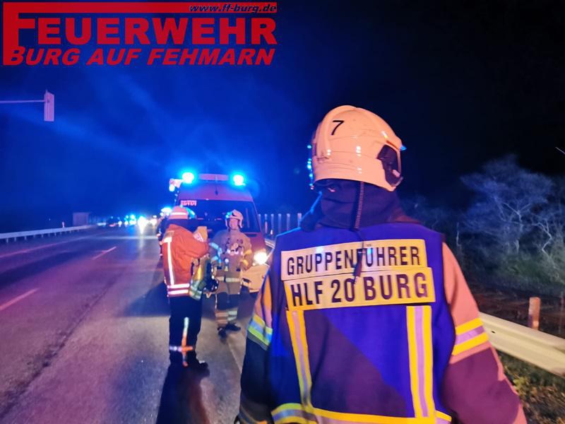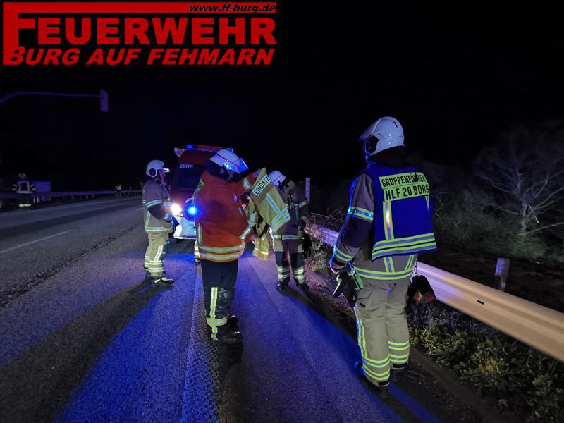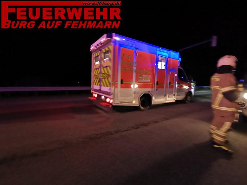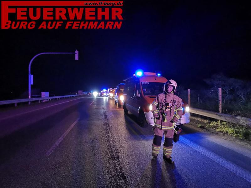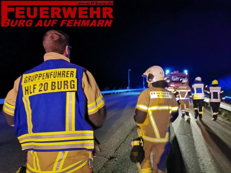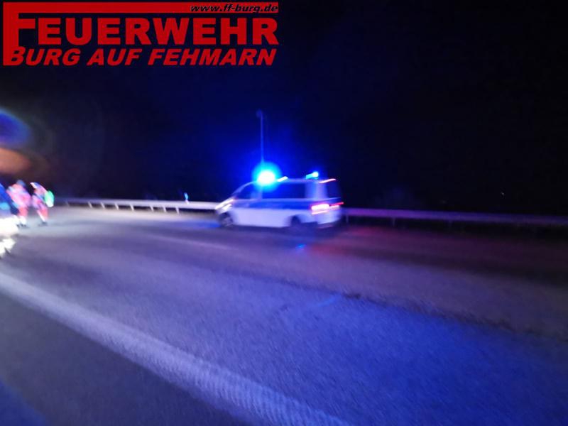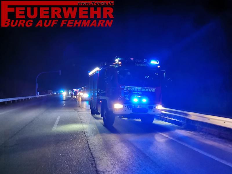 Die Lage stellte sich wie folgt heraus: Die Regionalbahn 85 (Richtung Lübeck unterwegs) überfuhr trotz Vollbremsung einen Rehbock und riss sich dadurch die Ölwanne auf und es traten rund 80 Liter Öl auf die Gleise/ins Gleisbett aus. Im Zug befanden sich zum Unfallzeitpunkt ein Fahrgast, ein Zugbegleiter und der Lokführer - alle blieben unverletzt. Die Fehmarnsundbrücke musste kurzzeitig für den gesamten Verkehr gesperrt werden. Für uns 33er Kräfte beschränkte sich die Tätigkeit auf das Ausleuchten der Einsatzstelle.