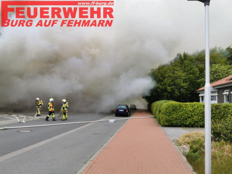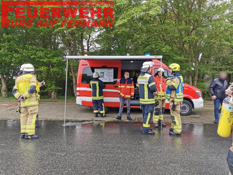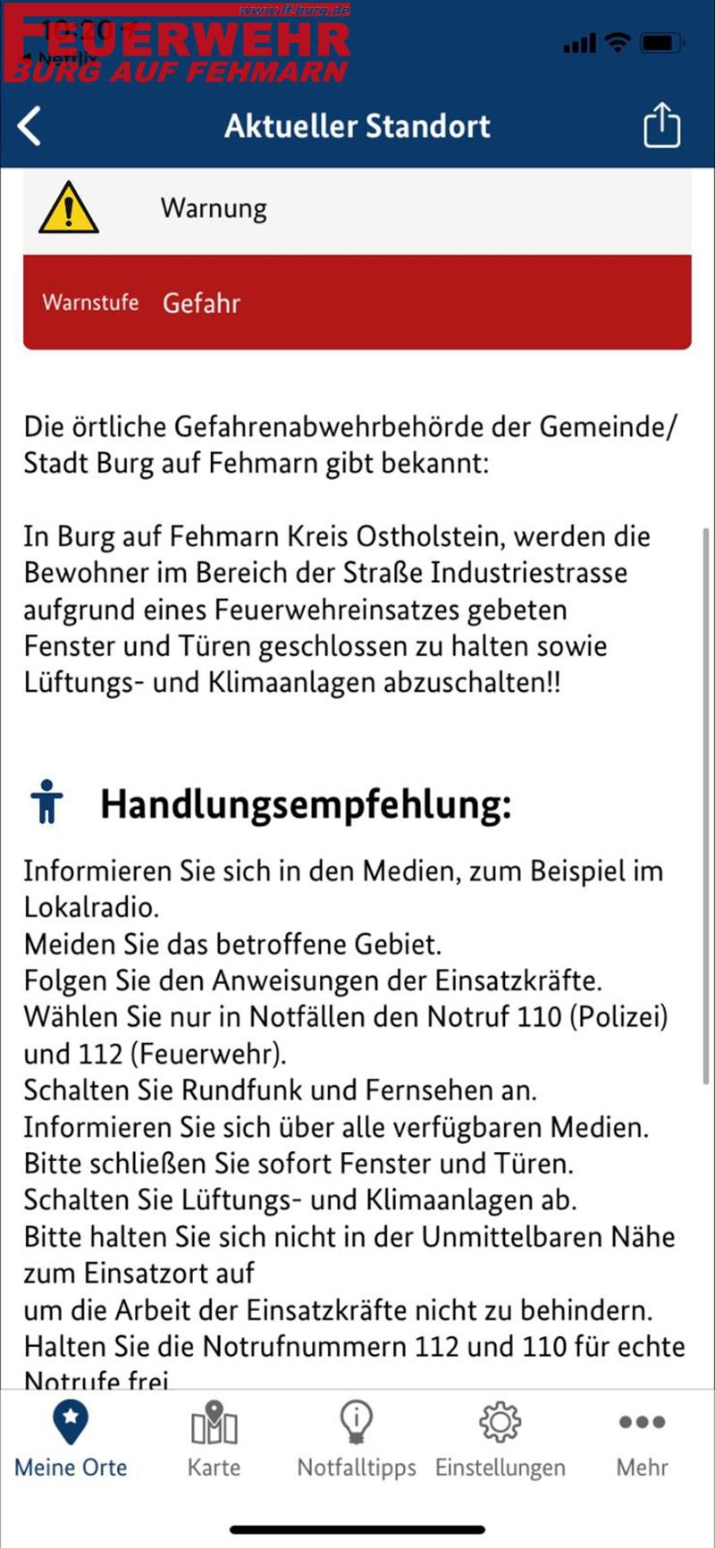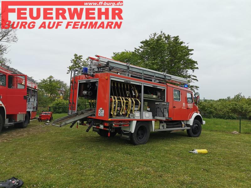 Wir sind per Funk von der IRLS Süd zu einem weiteren Einsatz in unserem Revier alarmiert worden (Vorher FEU BMA - Fehlalarm, noch am Einsatzort), es gäbe mehrere Anrufer, bestätigtes Feuer im Burger Gewerbegebiet. Daraufhin ließ unser Einsatzleiter gemäß des Stichwortes zusätzlich nochmals einen Vollalarm für die FF Burg a.F. auslösen. Dadurch, dass einige Fahrzeuge der FF Burg a.F. durch den vorigen Einsatz noch auf Status 3 bzw. 4 standen, wurde auch die FF Landkirchen automatisch mitalarmiert.