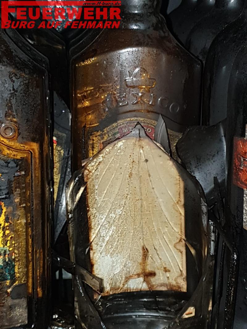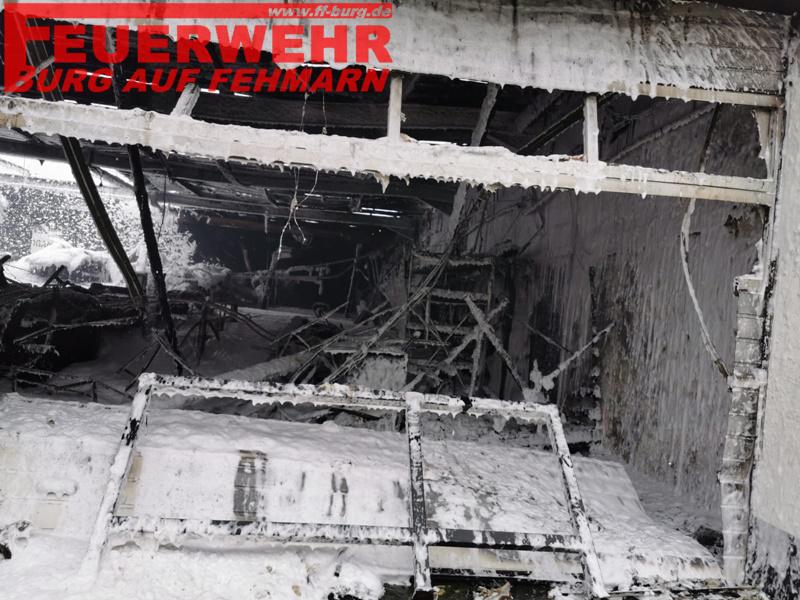 Gegen 14:05 Uhr flammte es nochmals im Brandobjekt auf, zügig wurde ein erneuter Schaumangriff aufgebaut. Es flammte das Tabakregel nochmals auf, was wir endgültig ablöschten und mit Schaum fluteten. Nachdem im Feuerwehrhaus endgültig alles wieder hergerichtet und einsatzbereit gemeldet wurde, hieß es gegen 16:30 Uhr Einsatzende.