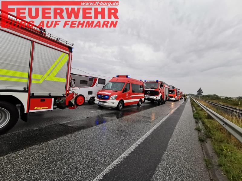 Bei unserem Eintreffen sollten wir u.a. mit dem zweiten Rettungssatz (HLF) in Bereitschaft bleiben. Im weiteren Einsatzverlauf kam auch der Rettungshubschrauber Christoph 12 zum Einsatz, der direkt an der Einsatzstelle landete. Wir wurden gegen 19:15 Uhr aus dem Einsatz entlassen. Die Fehmarnsundbrücke (Straße und Schiene) war während des Einsatzes voll gesperrt, was zu massiven Rückstaus führte.