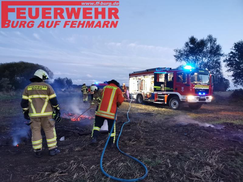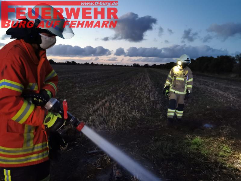 Noch auf der Anfahrt teilte uns die IRLS Süd per Funk mit, dass sie die FF Meeschendorf nachalarmiert hätten, da unklar war, welcher Zuständigkeitsbereich betroffen war. Der ersteintreffende stellv.OWF konnte schnell Entwarnung geben, alle Fahrzeuge inklusive die FF Meeschendorf konnten abbrechen. Nur das Burger HLF 33-48-02 sollte durchziehen. Es brannten auf einem Feld, nahe des Wäldchens "Ostersoll" Überreste eines am Tag angemeldeten Buschfeuers. Diese wurden mittels Schnellangriff abgelöscht. Im Anschluss im Feuerwehrhaus wurde dann die im vergangenen Jahr selbst gebaute Stiefelwaschanlage genutzt, um so kein Dreck in unsere Wache zu verschleppen.