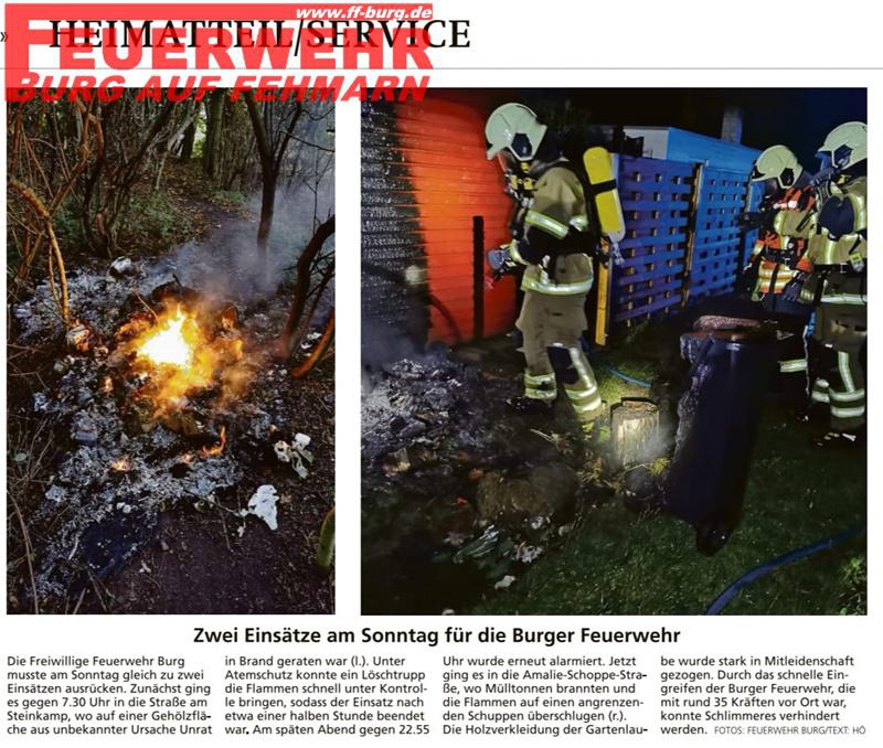 Der zwote Alarm an diesem Sonntag lautete "Schuppenbrand" in der Amalie-Schoppe-Straße.