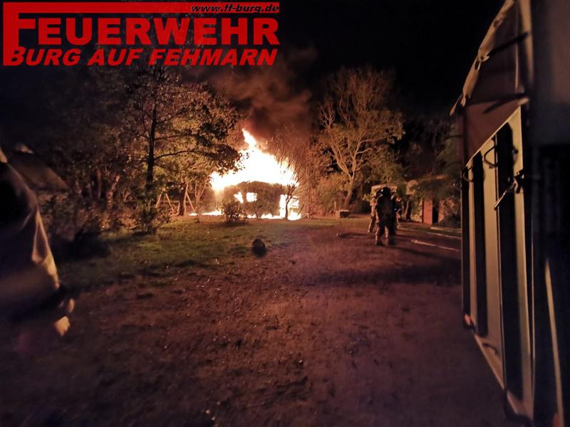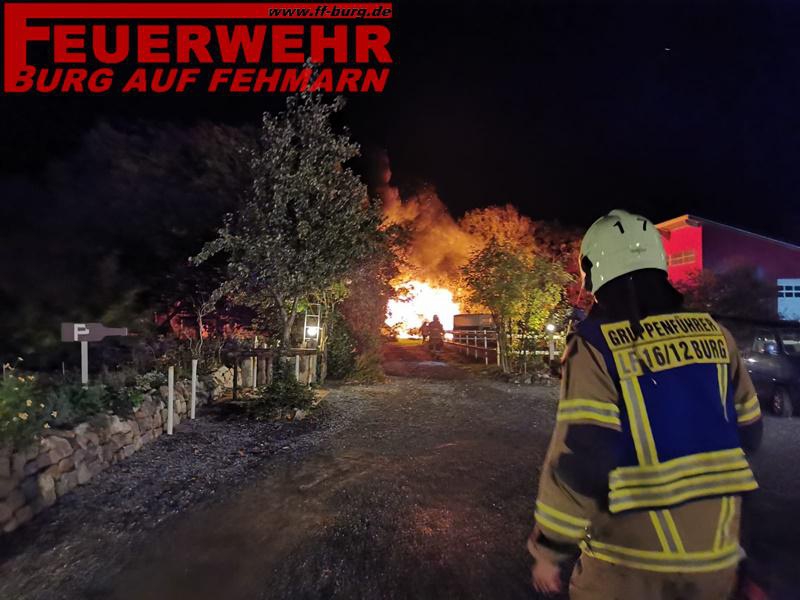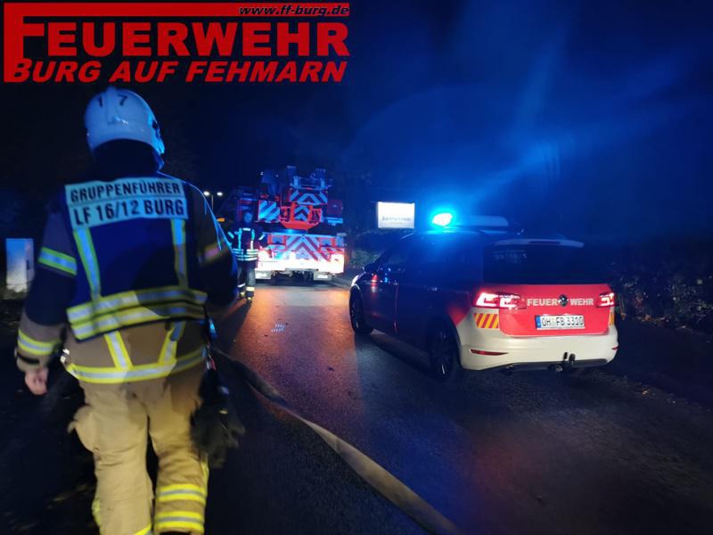 Unser ELW1 sowie die DLK trafen bereits als erste Unterstützungseinheit für die FF Süderort ein. Schon auf der Anfahrt leuchtete der Feuerschein in den Himmel. Nach aktueller Alarm- und Ausrückeordnung (Feuer Fehmarn-Land/DLK) rückten wir im ersten Step mit ELW1, DLK und LF 16/12 aus. Unser Burger Einheitsführer OWF D.Westphal erteilte uns den Auftrag, alle 33er Einheiten im Bereitstellungsraum zu sammeln, vorerst kein eingreifen notwendig. Im weiteren Verlauf wurden wir ohne Tätigkeit durch die Einsatzleitung aus dem Einsatz entlassen.