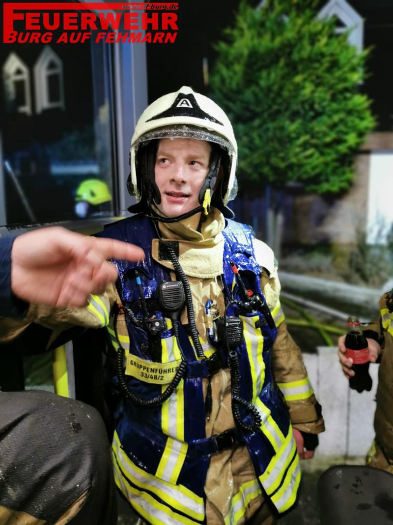 Am stürmischen Sonntagnachmittag wurden wir inklusive der Führungsgruppe Fehmarn um 17:00 Uhr zu einem Dachstuhlbrand Y (FEU G 00 Y = Feuer Groß, Menschenleben in Gefahr) alarmiert. Nur vier Minuten nach der Alarmierung waren bereits drei Einsatzfahrzeuge auf dem Weg nach Neue Tiefe. Am Einsatzort konnte unser Ortswehrführer die Lage bestätigen, die Besatzung des ersteintreffenden HLF stellte sofort zwei Atemschutztrupps für die Menschenrettung und Brandbekämpfung bereit, nachrückende Löschfahrzeuge kümmerten sich vorrangig um die Löschwasserversorgung inklusive dem Einspeisen des HLF & der Drehleiter. Nach nur wenigen Minuten stand glücklicherweise fest, dass sich keine Personen mehr im Gebäude befanden. Im weiteren Einsatzverlauf wurde das Einsatzstichwort zweimal erhöht (zuletzt auf FEU 3 = Feuer, 3 Löschzüge erforderlich) und weitere Einheiten (17:10 Uhr Stichworterhöhung FEU2: FF Meeschendorf, 17:25 Uhr Stichworterhöhung FEU3 FF Landkirchen) wurden nachalarmiert. Der Einsatz zog sich über acht Stunden bei Eiseskälte hin. Das Löschwasser, die Einsatzkleidung, die Gerätschaften bildeten bei Minusgraden so zügig Eispanzer. Die Einsatzstelle musste regelmäßig gestreut werden, um die Unfallgefahr zu minimieren. Während des Einsatzes wurde die Bürgermeister-Fox-Straße voll gesperrt, in weiteren Teilen des Ortes kam es durch den Einsatz zu Verkehrsbehinderungen. Gegen 01:30 Uhr am Montagmorgen konnten die letzten Einsatzkräfte die Wache verlassen. Die vollständige Wiederherstellung der Einsatzbereitschaft zog sich den gesamten Montag hin, da u.a. Gerätschaften über Nacht in der dafür auf Volllast geheizten Fahrzeughalle auftauen mussten...