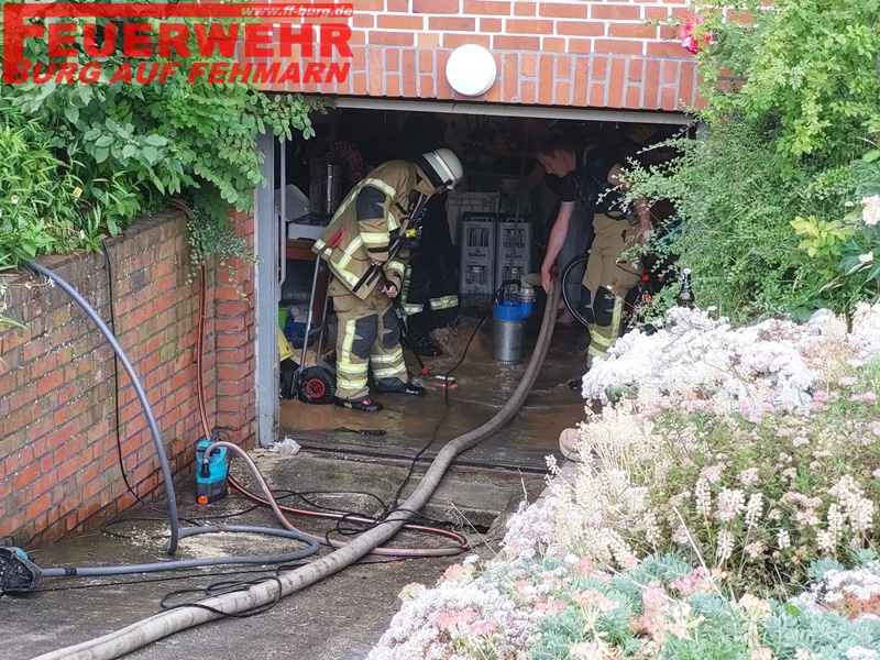 Gerade zuhause angekommen, so wurden wir erneut über die IRLS Süd per Melder zu einem Unwettereinsatz alarmiert. Garagenkeller stand ca. 6-7cm unter Wasser. Mittels Tauchpumpe bis auf 3cm leer gelenzt und zurück an Eigentümer übergeben.