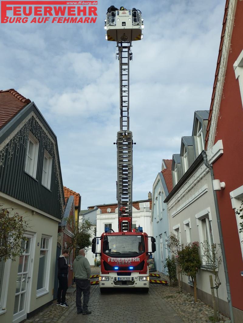 Es wurden am Sonnabendmittag Stellproben mit der Heiligenhafener Drehleiter in der Innenstadt, auf dem Kopfsteinpflaster sowie in der Ohrtstraße, ebenfalls auf dem Kopfsteinpflaster durchgeführt. Hintergrund ist die Anschaffung einer neuen DLK, hier wurde überprüft, ob die DLK aus Heiligenhafen (anderer Hersteller, als unsere DL) auf diesen Flächen sicher abgestützt werden kann, dies wurde bewiesen. Vielen Dank nochmal an die 35er.
